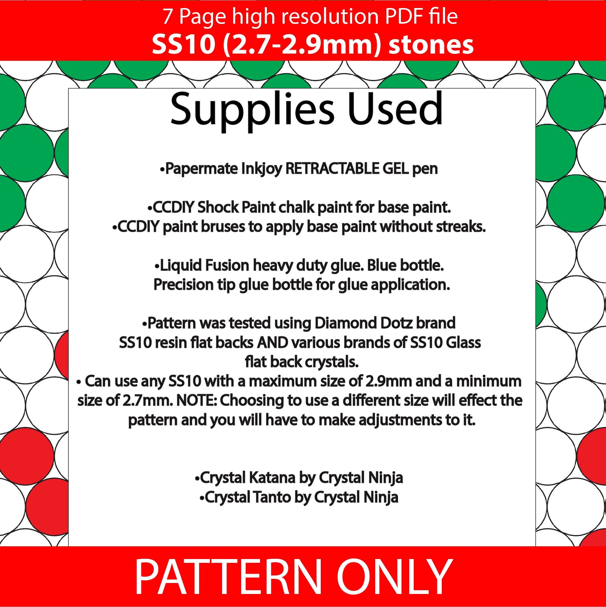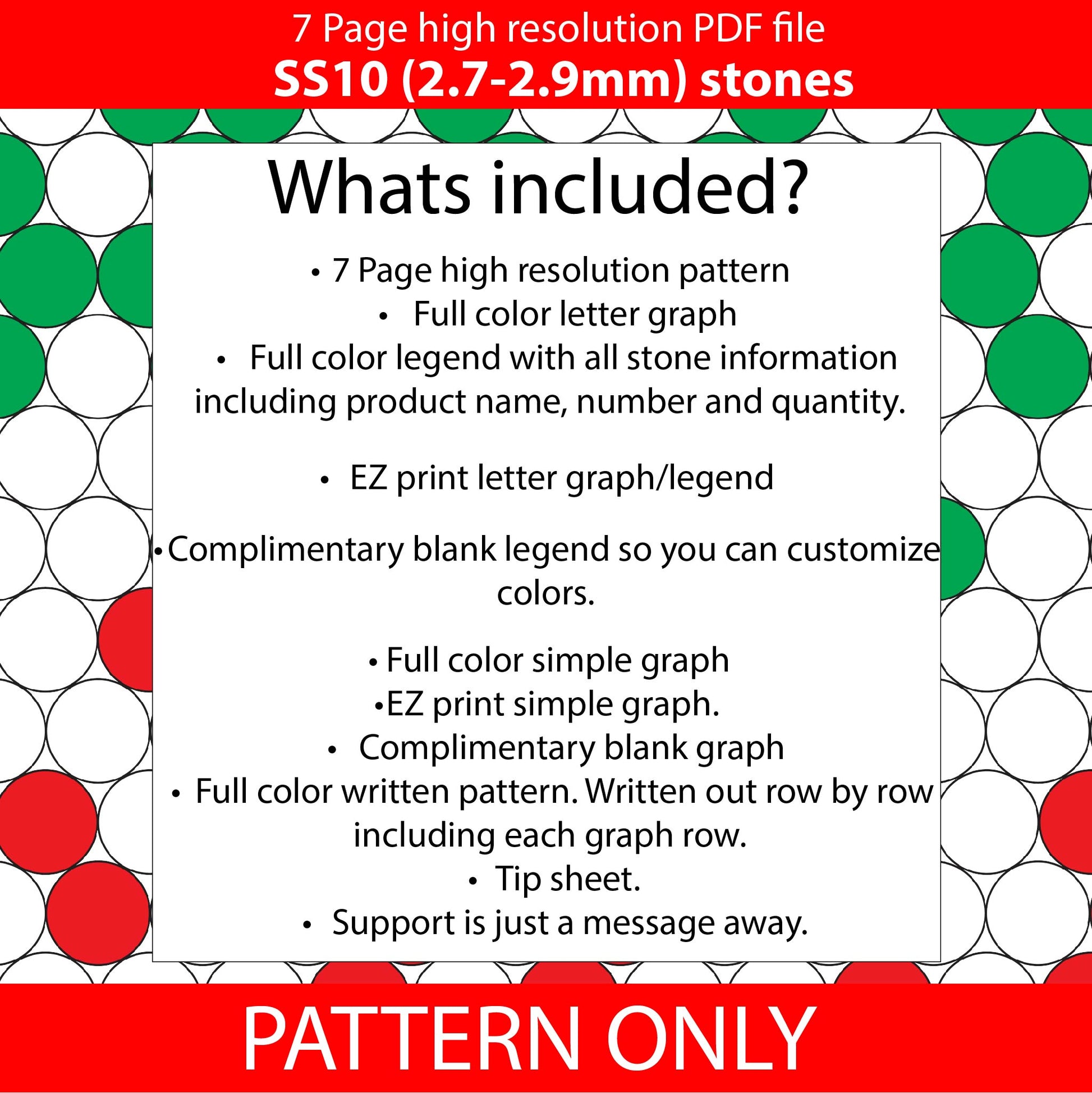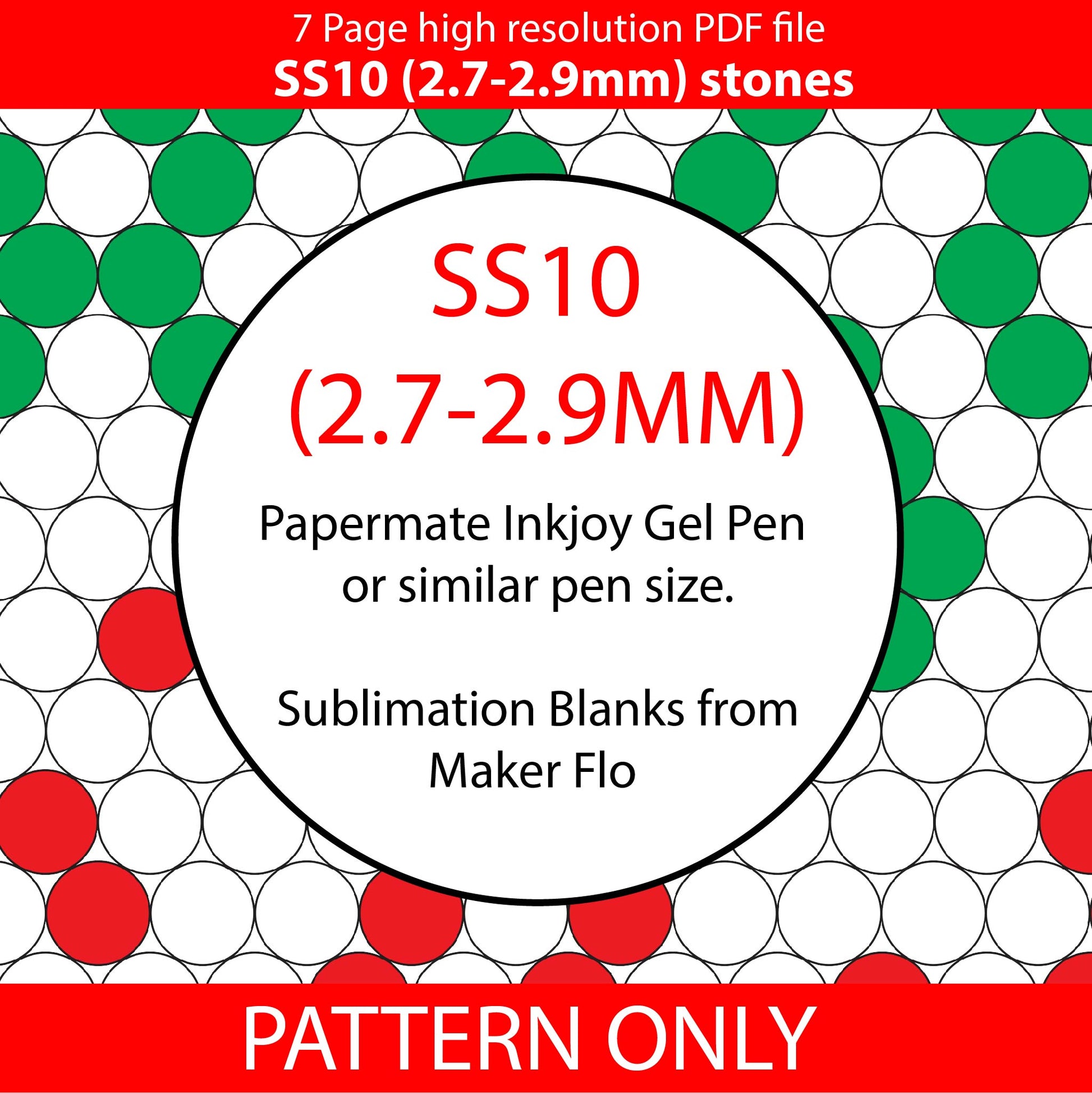 SS10 (2.7-2.9mm) Red white green bling pen pattern- Honeycomb placement