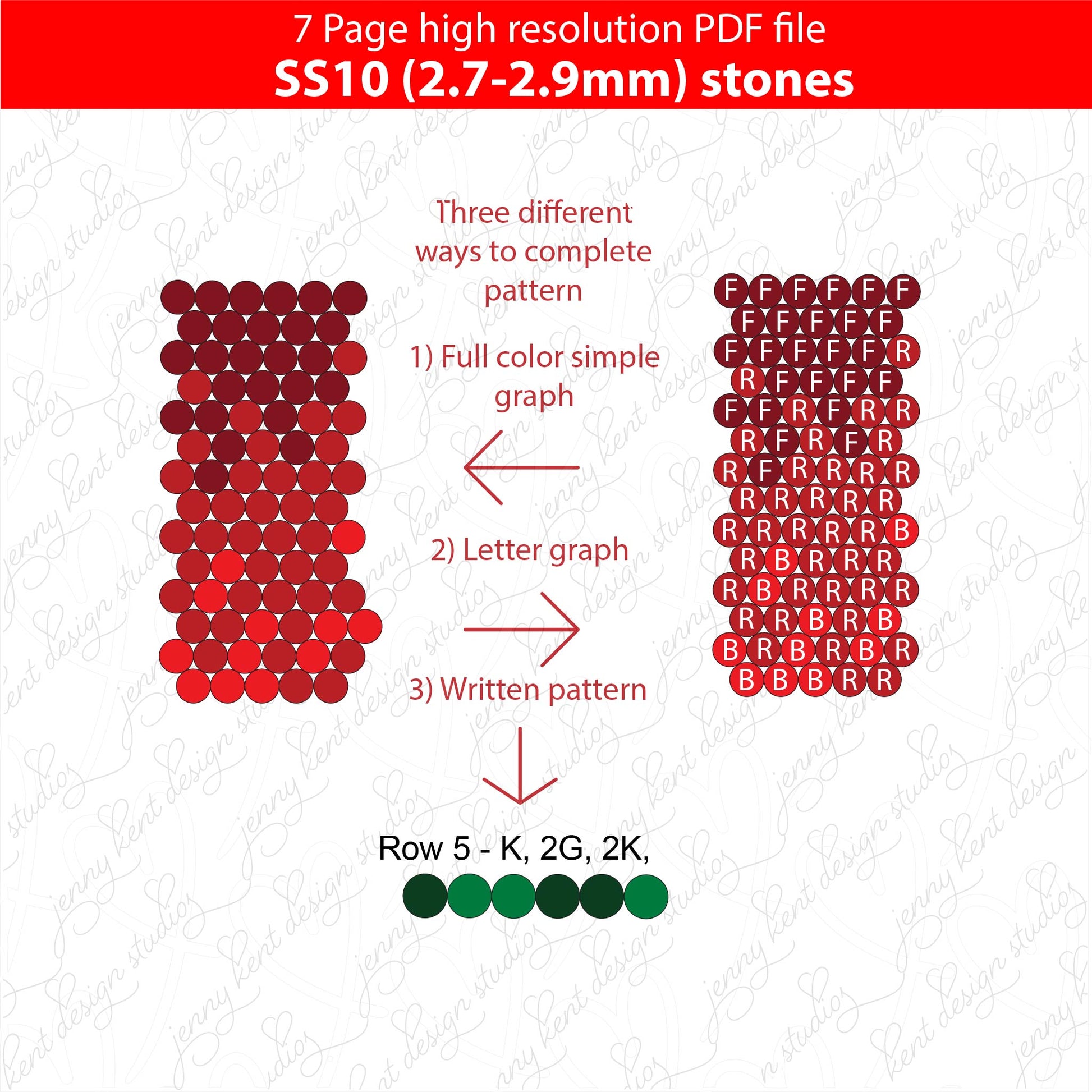 SS10 (2.7-2.9mm) Red white green ombre bling pen graph,bling template,rhinestone pattern, bling pen wrap,PDF,full color pattern,honeycomb,christmas,dotz,diy