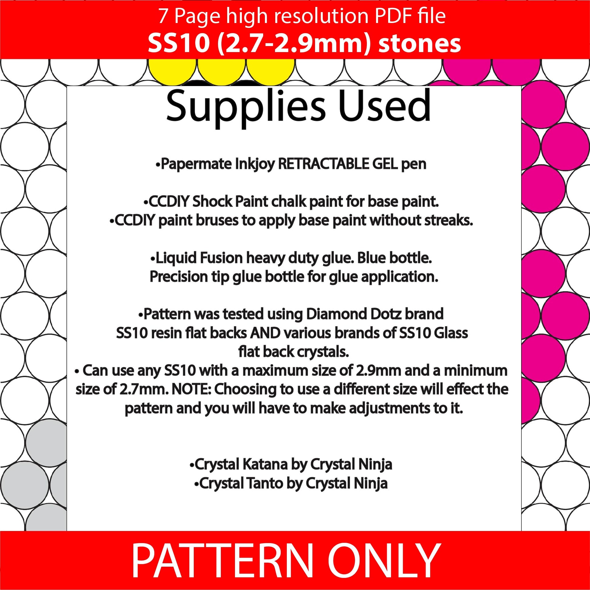 Pattern was created using an ink joy gel pen but other pens can be used as long as it fits 12 stones around