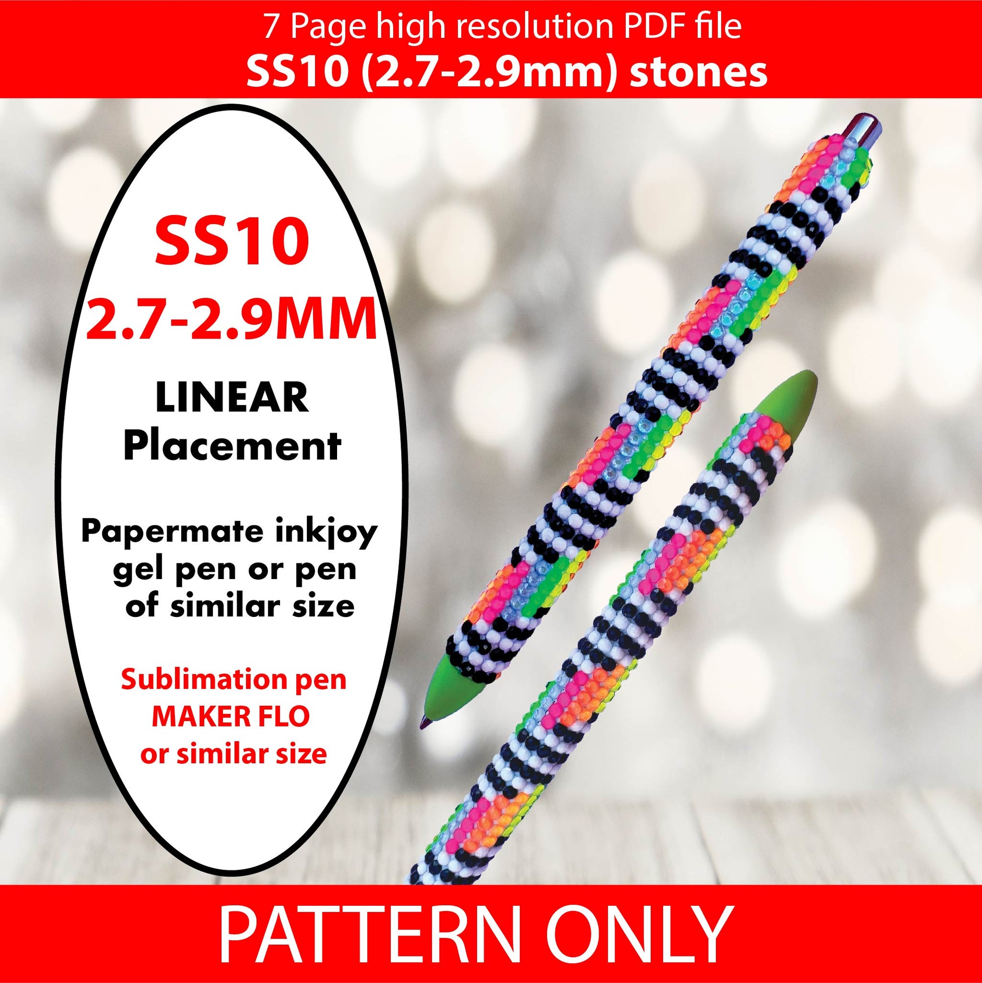 SS10 (2.7-2.9mm) Neon contrast stripe bling pen pattern,bling pen,bling tumbler,inkjoy,crystal bling pen,pdf,written pattern,peyote,honeycomb,diy,dotz