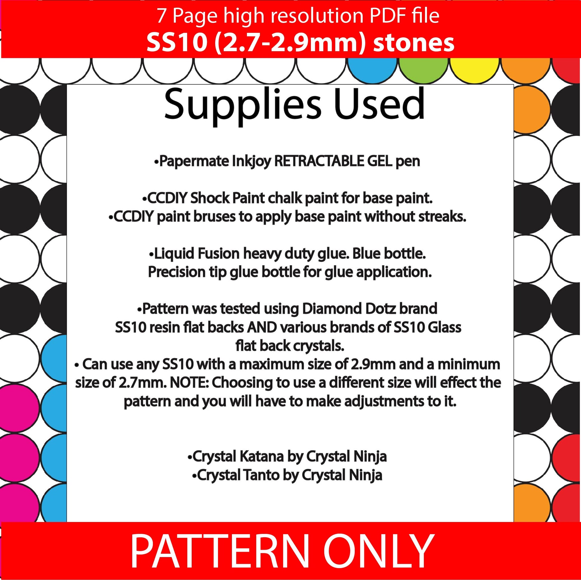 Pattern was created using an ink joy gel pen but other pens can be used as long as it fits 12 stones around